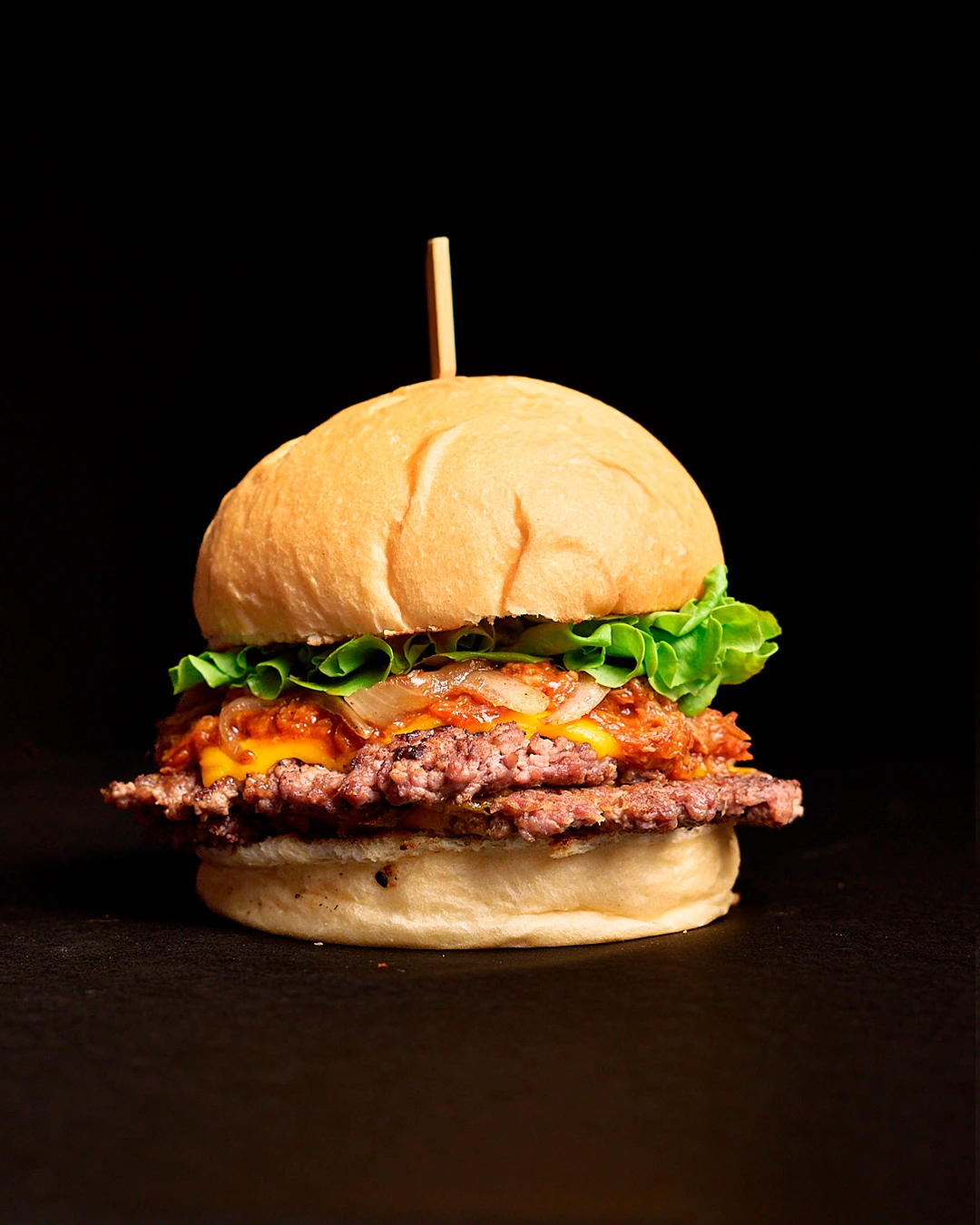 300 gr de roastbeef con pulled de cerdo en salsa barbacoa harlem, queso americano, cebolla al grill y lechuga en pan de papa casero + Papas fritas